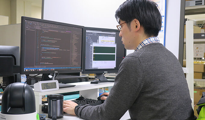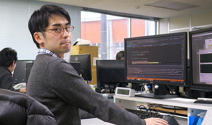 会社訪問をしたときにとても働きやすそうな、話しやすそうな雰囲気を感じたことです。もともとは機械系の学科で自動車の研究室にいました。研究テーマは制御でしたので、多少はプログラム的なことは学んでいましたが、やはり畑は違う。”大丈夫かな…?”っていう思いは正直ありましたが、この会社の雰囲気なら壁にぶつかっても気軽に質問して教えてもらえそうだ、って感じたことが入社を決めた大きな理由です。
