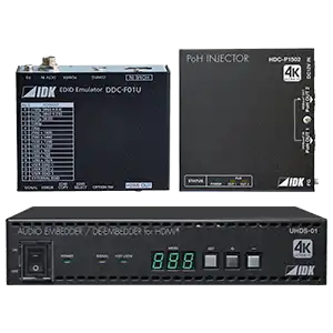 HDMI・DVI・SDI などの信号別、同軸・CAT・光ファイバーなどの各種伝送ケーブルに対応した延長器