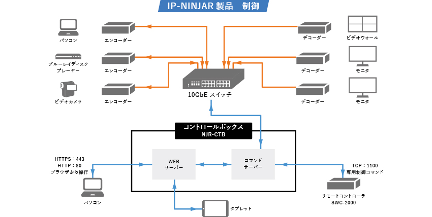 IP-NINJAR製品 (NJR-01UHD / NJR-W01UHD / NJR-T01SDI / NJR-04HD / NJR-AB08DAN) を統合管理するための専用機器です。