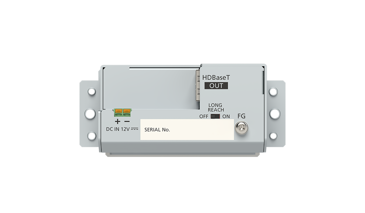 入力された映像信号は、HDBaseT信号に変換され、最大100 m伝送できます。ロングリーチモードの設定では1080p (24 bit) の映像信号を最大150 m伝送できます。