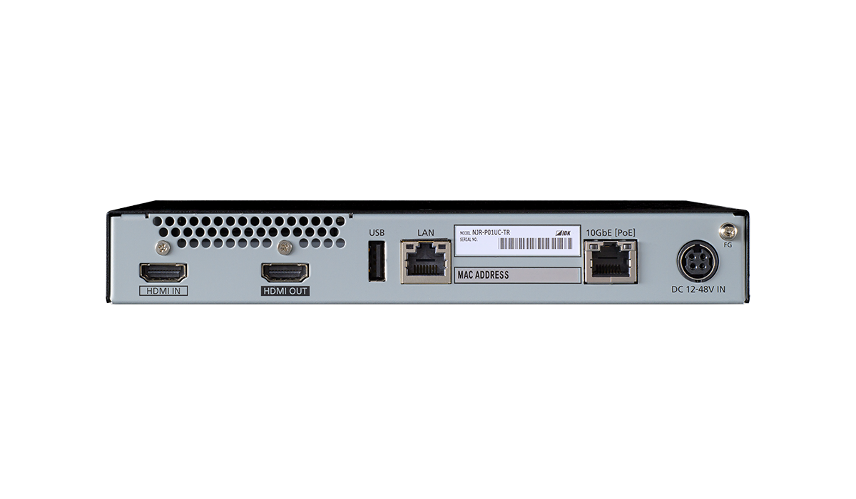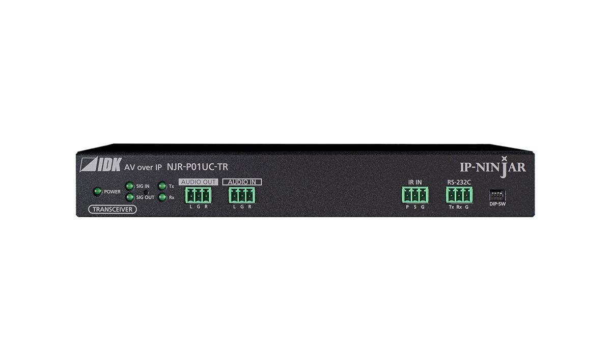 NJR-P01UC-TR(トランシーバー)は、HDMI信号とRS-232C、LAN、KVMなどのUSBをツイストペアケーブルで長距離伝送するAV over IP機器です。映像信号は最大4K@60(4:4:4)、HDCP 2.2に対応しています。