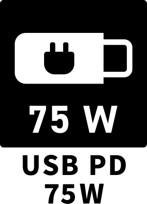 映像入力のUSB-CコネクターはUSB Power Deliveryに対応しており最大75Wの電源供給が可能です。