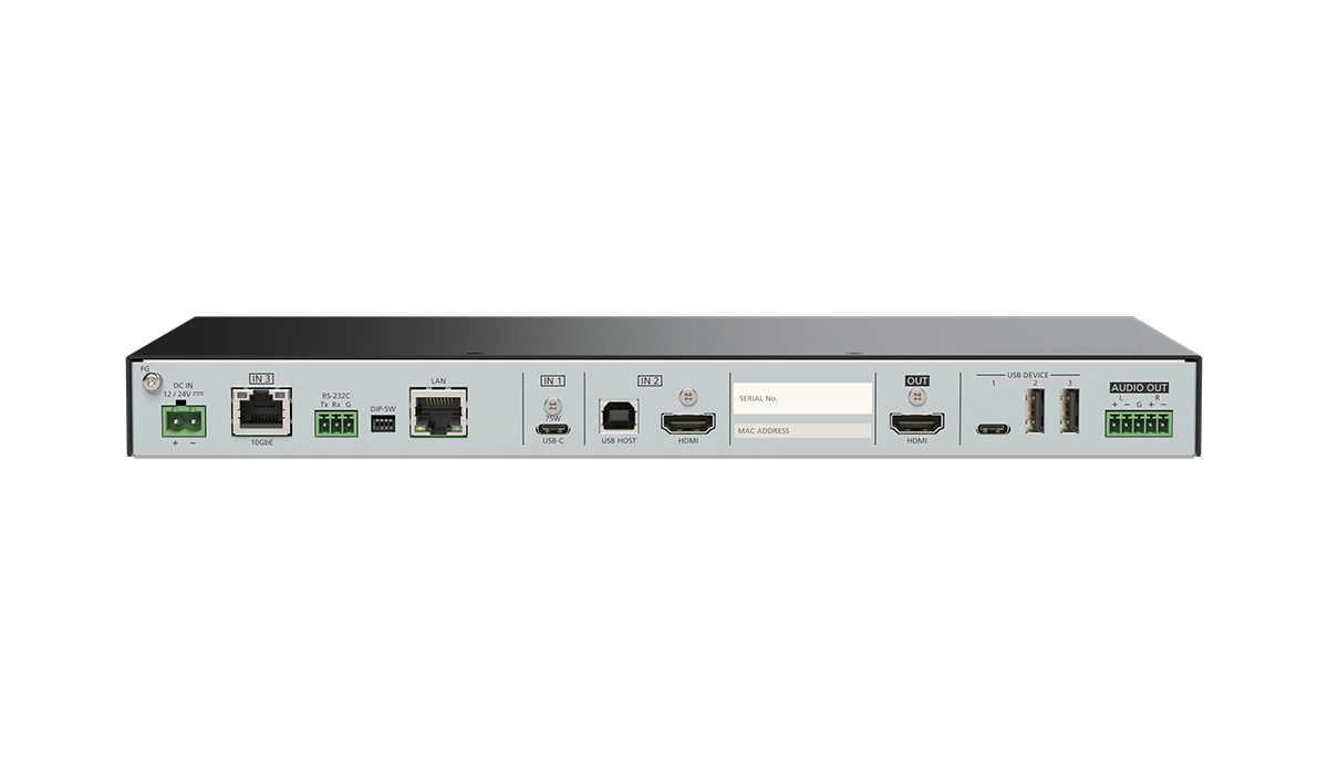 NJR-L31UC-R(デコーダー)の映像入力は、USB-Cが1系統、HDMIが1系統、10GbE CAT(SDVoE)が1系統あり、いずれかをHDMIに出力します。
