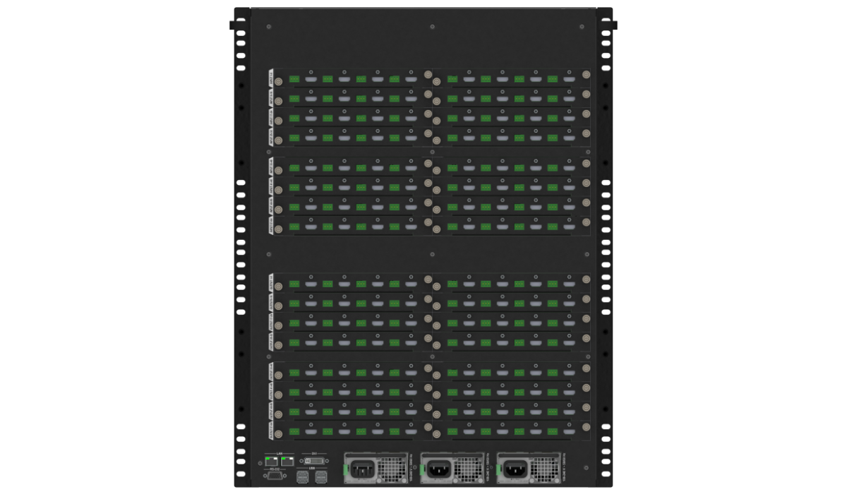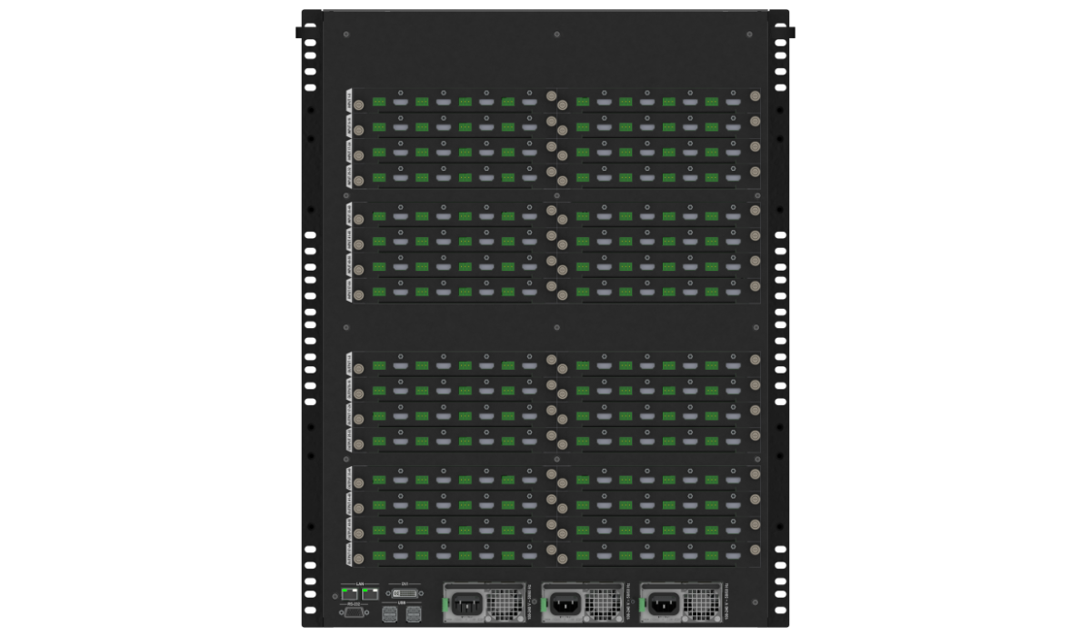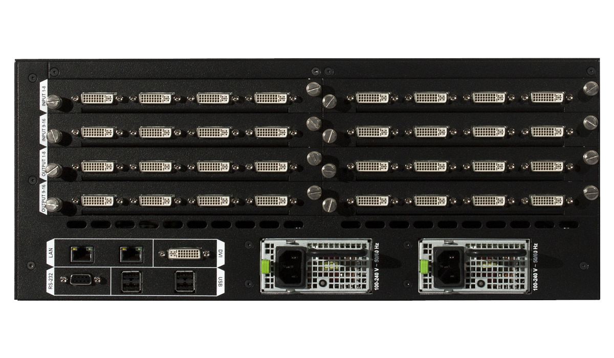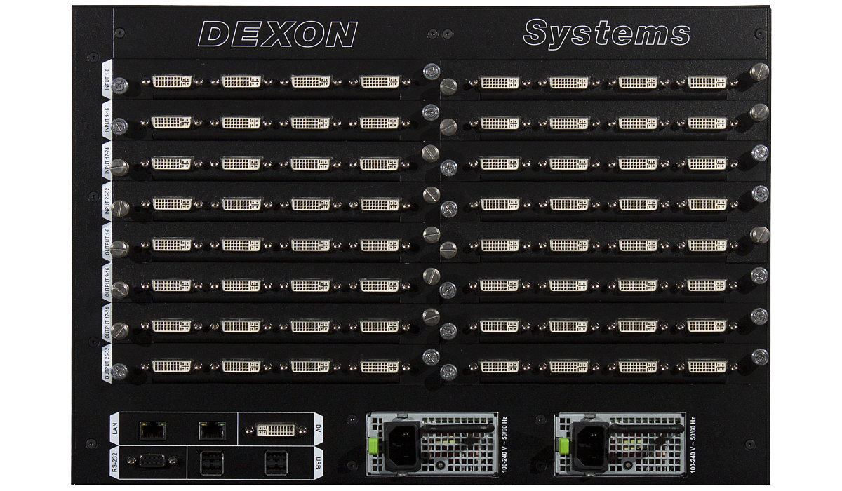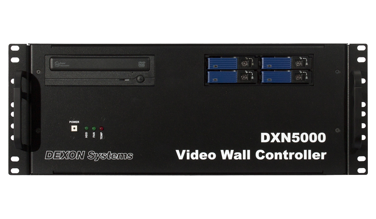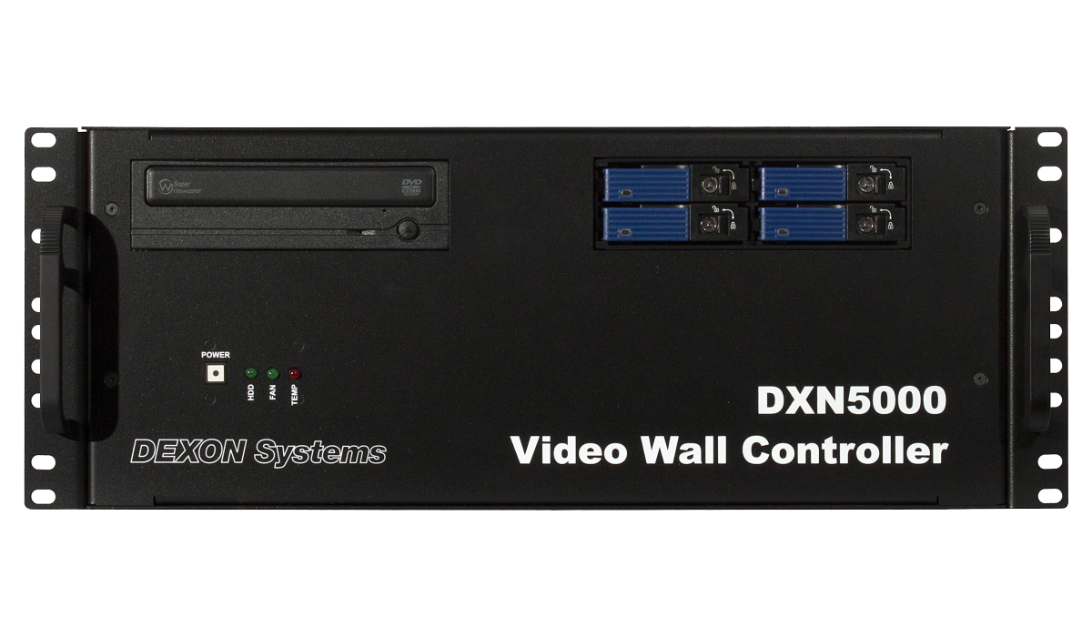 DXN-5000シリーズはHDCP(著作権保護)に対応したWindowsベースのビデオウォールコントローラーです。最大64入力44出力の構成が可能です。入出力カードは4系統単位で選択が可能です(PinP4モデルの出力カードは2系統単位で選択が可能です)。