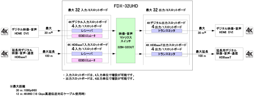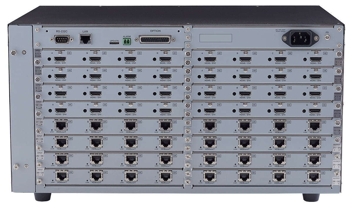 | 出力スロットボード | 4Kデジタル | 組み合わせにより最大8スロット (最大32系統) ※出力スロットボードは、4出力単位で増設が可能 |