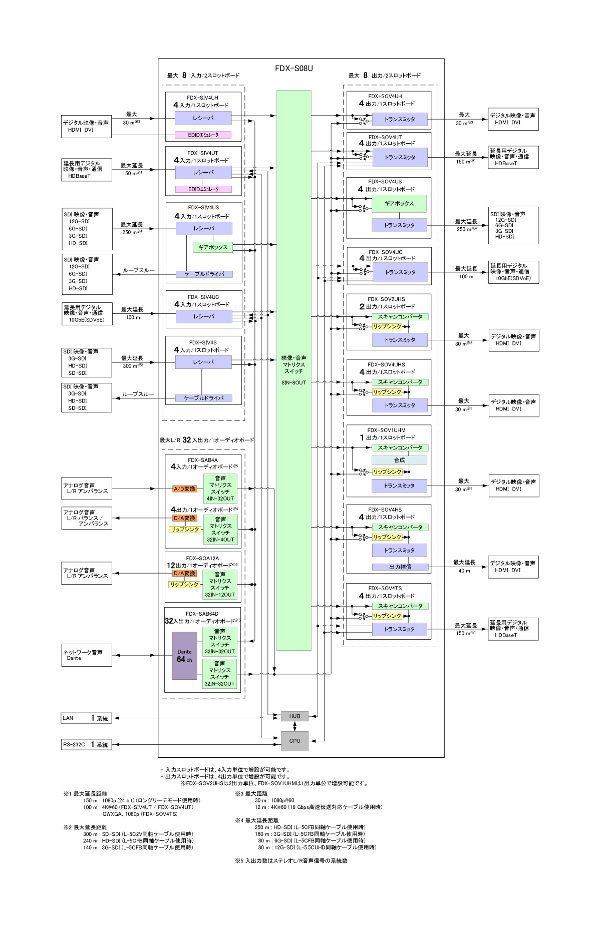 | 出力スロットボード | FDX-SOV4UH | 4系統 4K@60 HDCP 2.2 HDMI / DVI | |