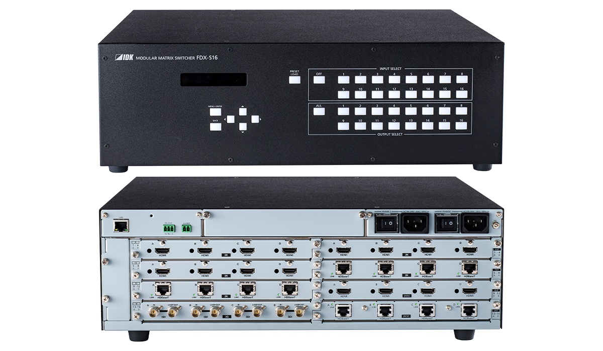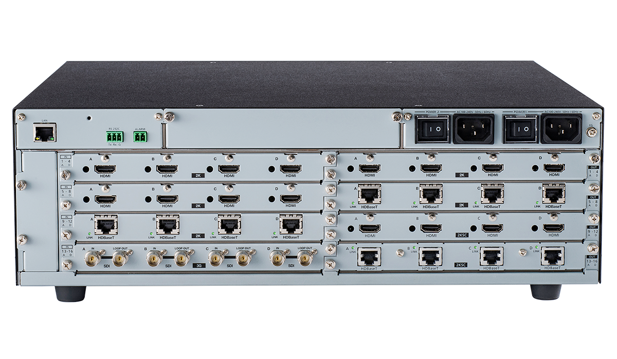 最大16入力16出力のモジュラー型マトリクススイッチャーです。