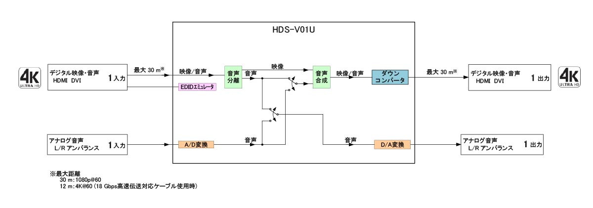 HDS-V01Uは、解像度4K@60に対応したHDMIオーディオエンベッダー・ディエンベッダーです。