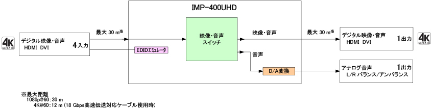 | ケーブル最大距離 | デジタル入力部 | 1080p@60:30 m、4K@60:12 m |