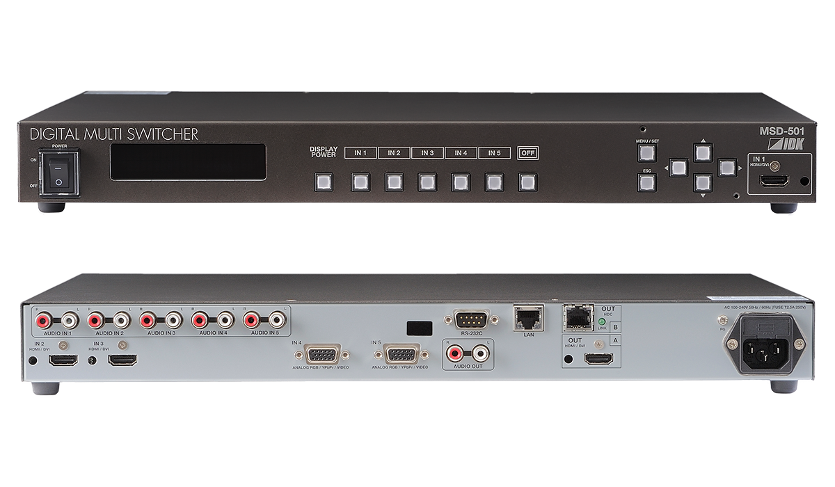 5入力1出力のスキャンコンバーター内蔵デジタルマルチスイッチャーです。
