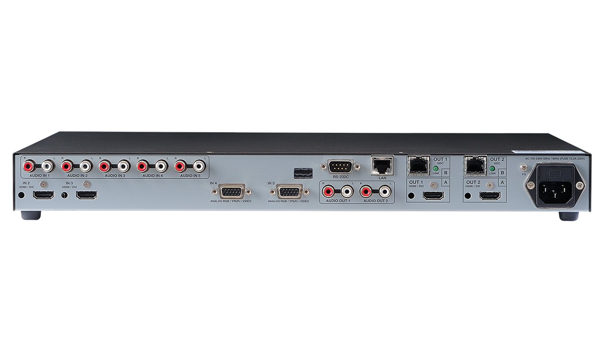 5入力2出力のスキャンコンバーター内蔵デジタルマルチスイッチャーです。