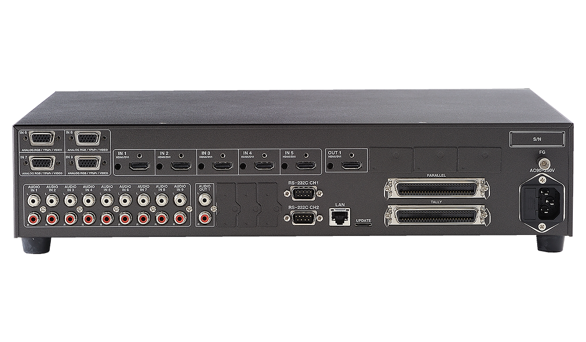 9入力1出力のスキャンコンバーター内蔵デジタルマルチスイッチャーです。