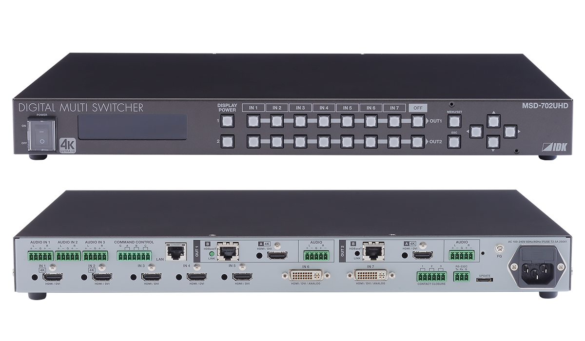 7入力2出力のスキャンコンバーター内蔵デジタルマルチスイッチャーです。