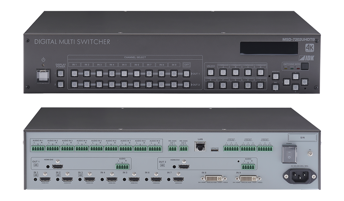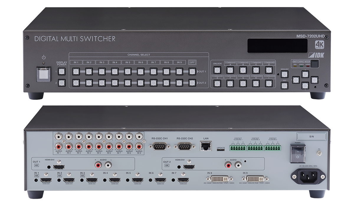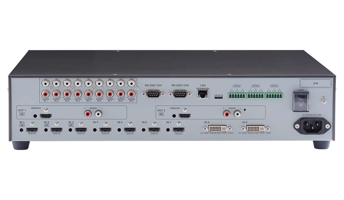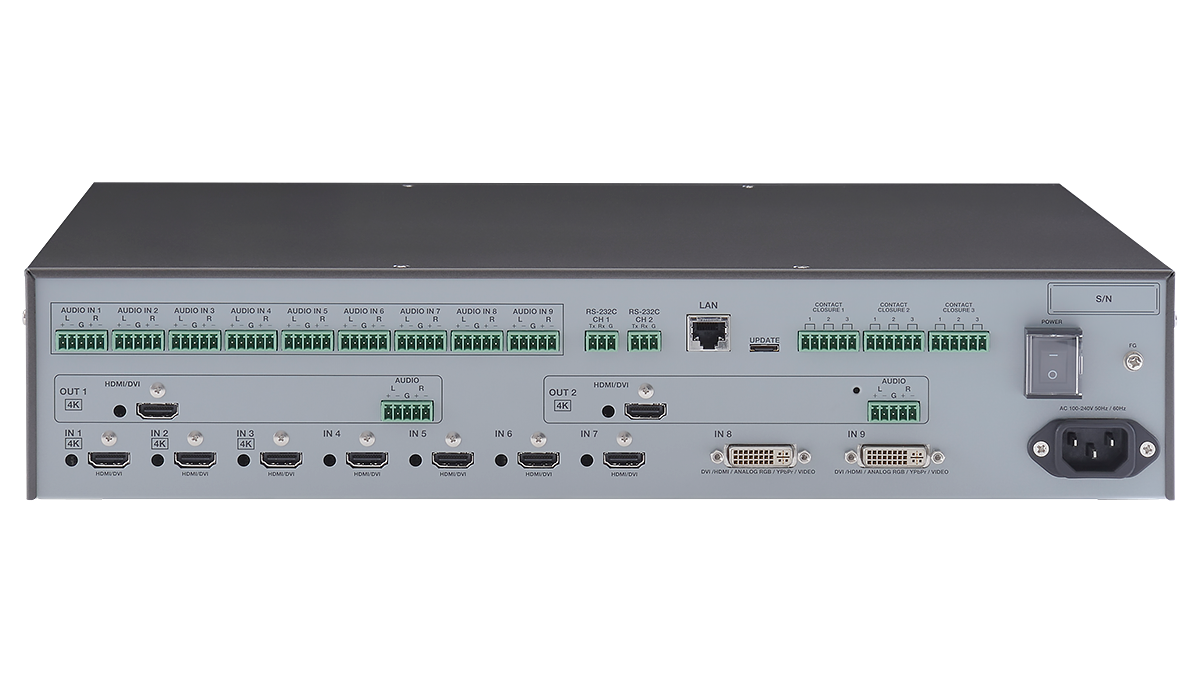 9入力2出力のスキャンコンバーター内蔵デジタルマルチスイッチャーです。
