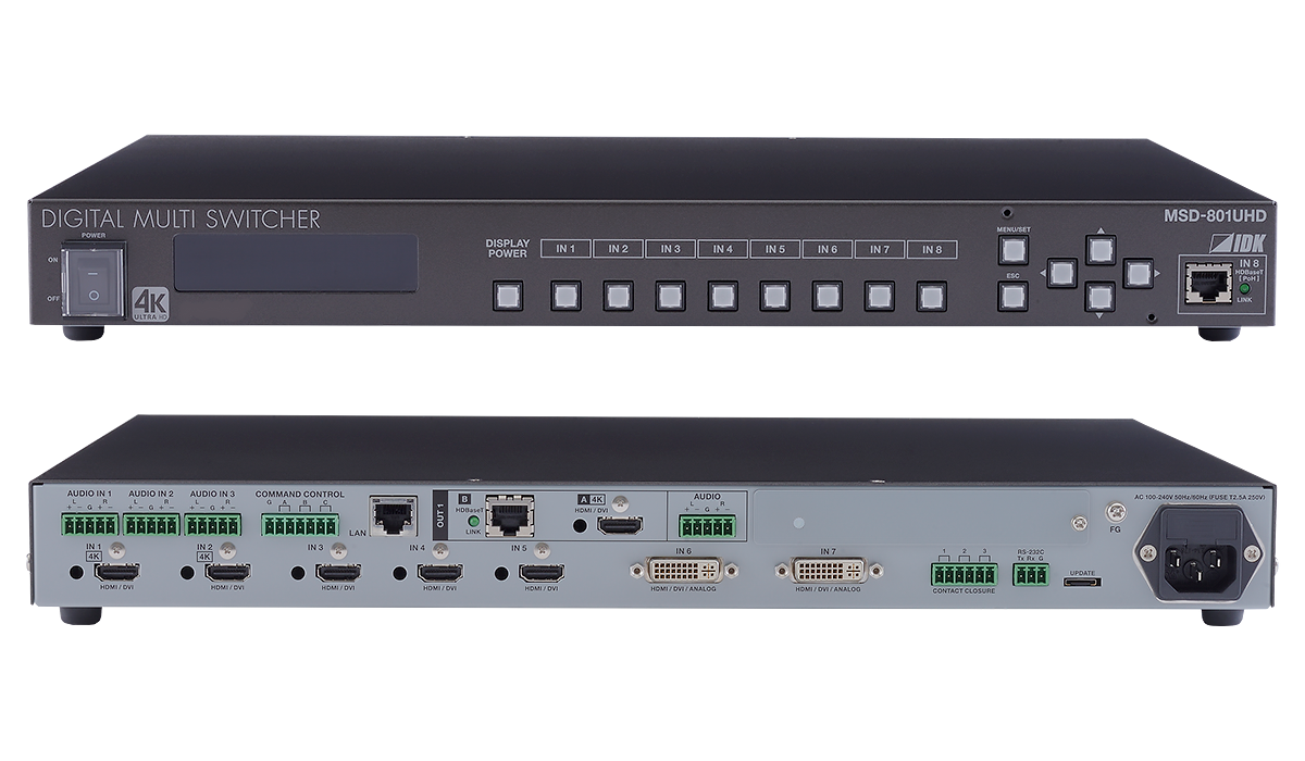 8入力1出力のスキャンコンバーター内蔵デジタルマルチスイッチャーです。