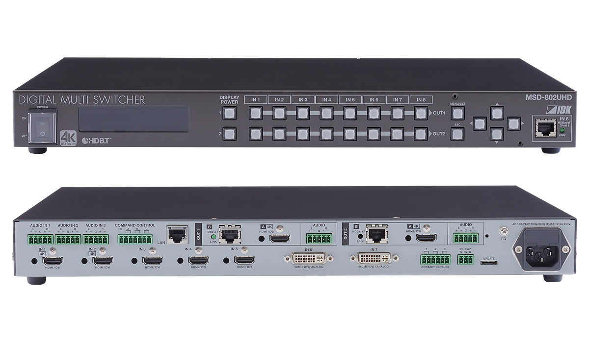 8入力2出力のスキャンコンバーター内蔵デジタルマルチスイッチャーです。