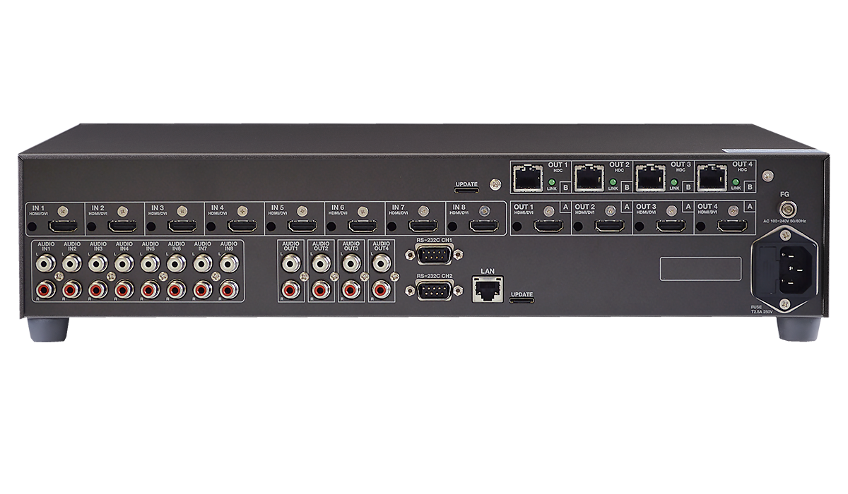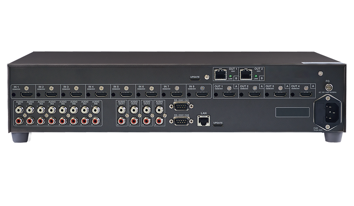 8入力4出力のスキャンコンバーター内蔵デジタルマルチスイッチャーです。