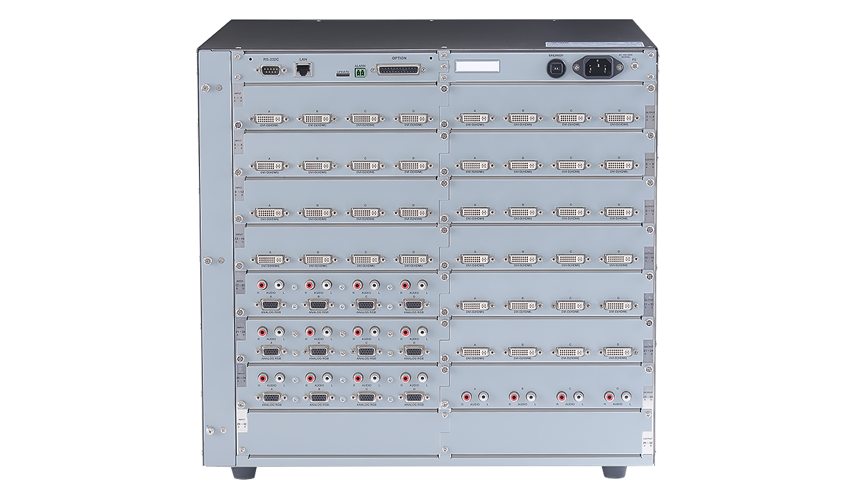 最大32入力32出力のスキャンコンバーター内蔵モジュラー型デジタルマルチスイッチャーです。