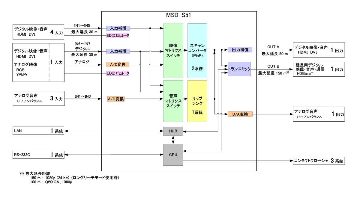 | デジタル出力部 | HDMI / DVI :50 m HDBaseT :100 m、150 m (ロングリーチモード) |