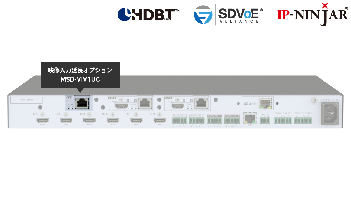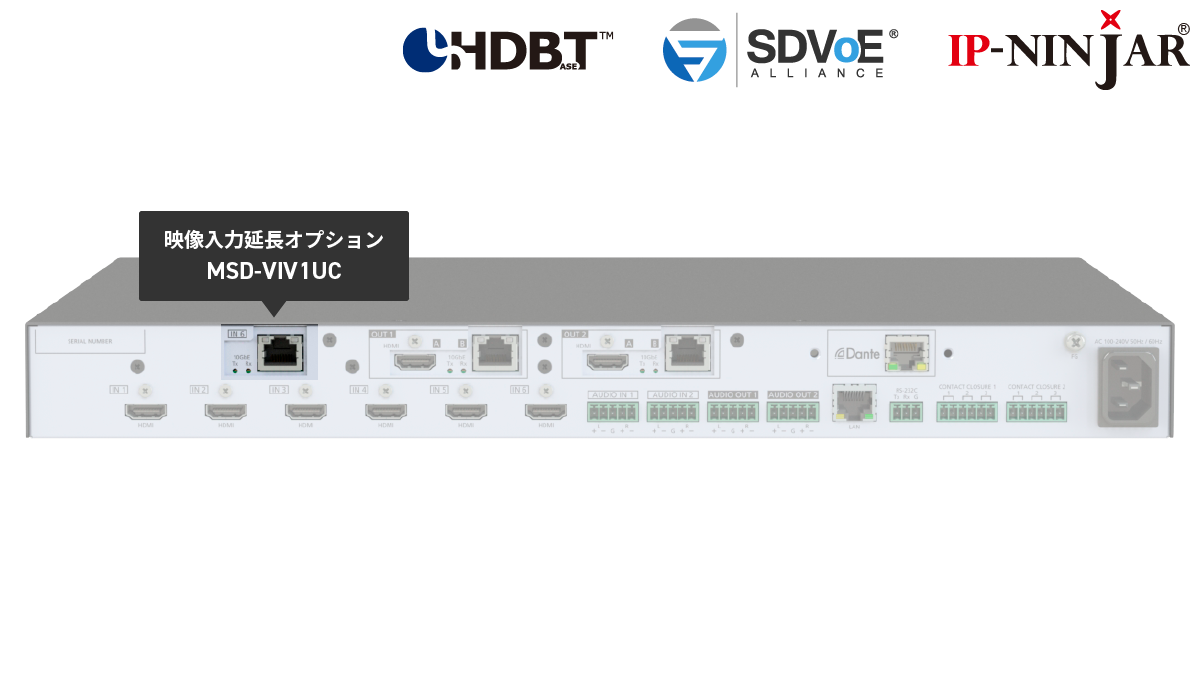 | 販売中 | MSD-VIV1UT | HDBaseT入力ユニット | 75,000 円 (税抜) |