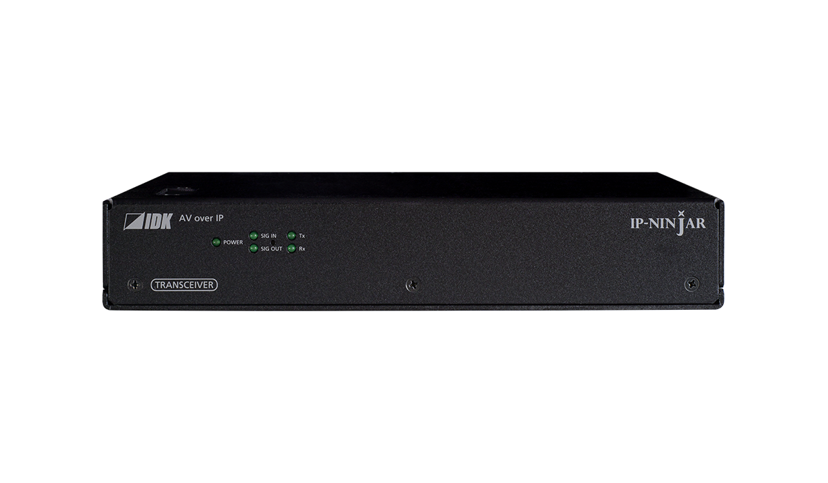NJR-P01UCR-TR(トランシーバー)は、HDMI信号とLANをツイストペアケーブルで長距離伝送するAV over IP機器です。映像信号は最大4K@60(4:4:4)、HDCP 2.2に対応しています。
