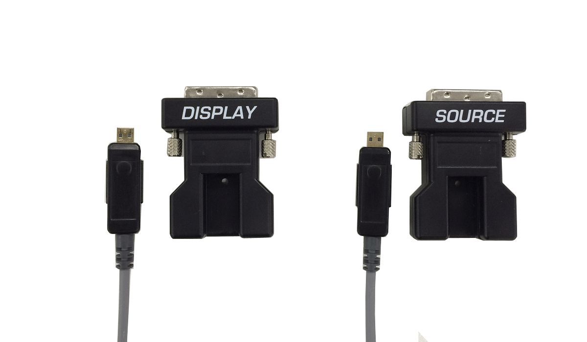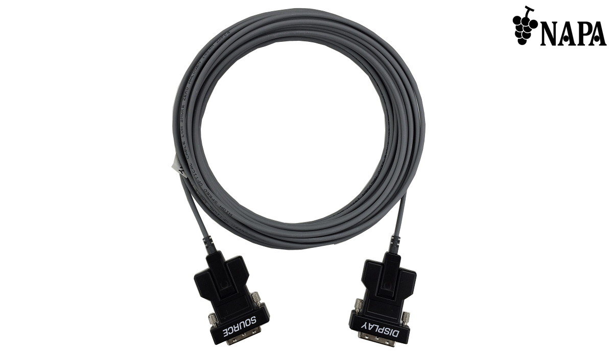 NP-AOC-DVI/DVI は、コネクター着脱式のDVI 光延長ケーブルでFull HD またはWUXGA RB を最大100m まで延長が可能です。信号劣化、損失、伝送距離の制限、またケーブルの重さの点から従来の同軸ケーブルや光延長ケーブルより優れており、容易に施工が可能です。また通線がしやすいようにDVI コネクター部分は取り外しができるように設計されており、コネクターと光ケーブルの接続部はmicro-HDMI となっています。ソース側のDVI 端子より電源を共有するため外部電源供給が不要です。高い引張強度、圧潰強度を持ち、高品質難燃性の外皮を採用しています。