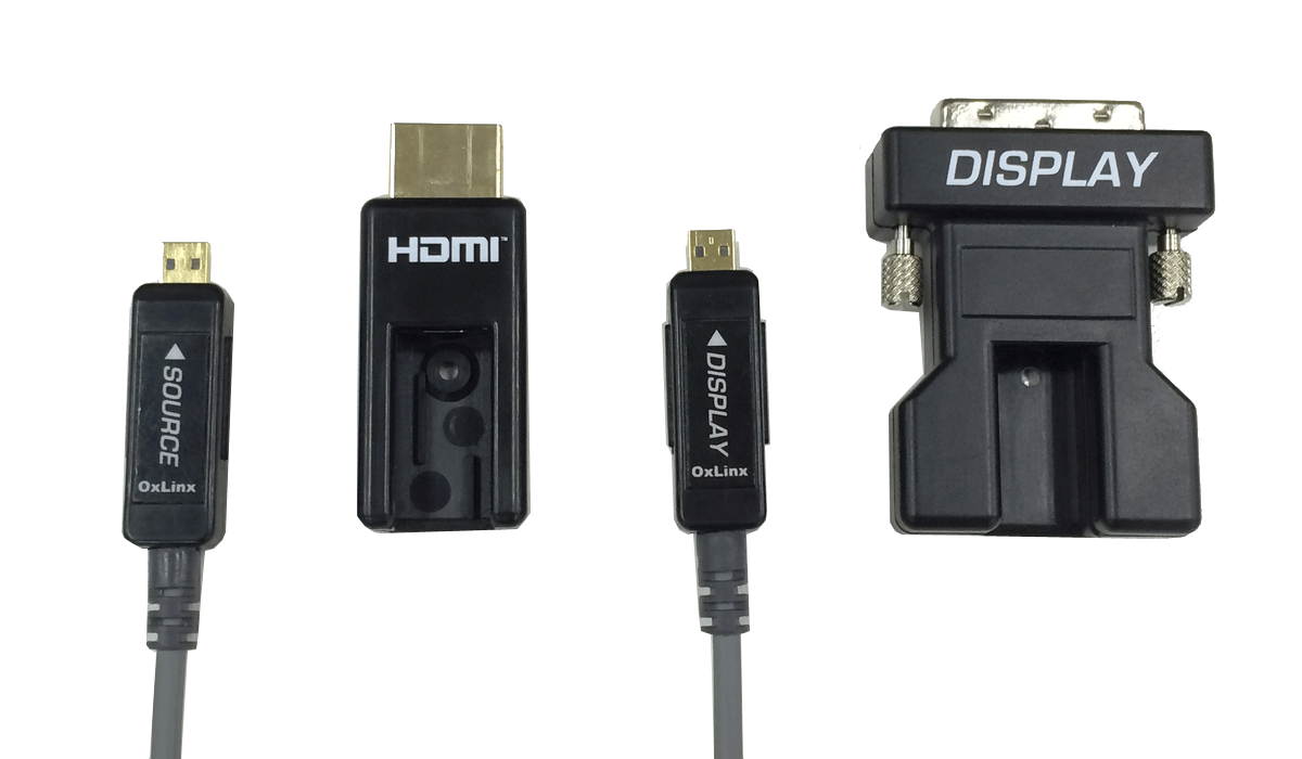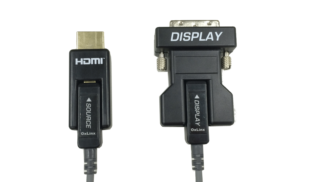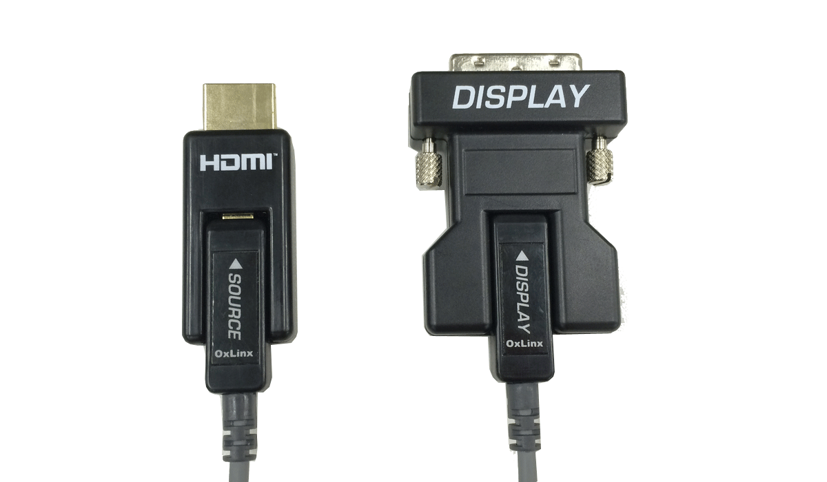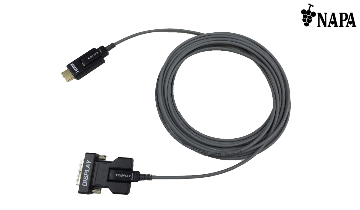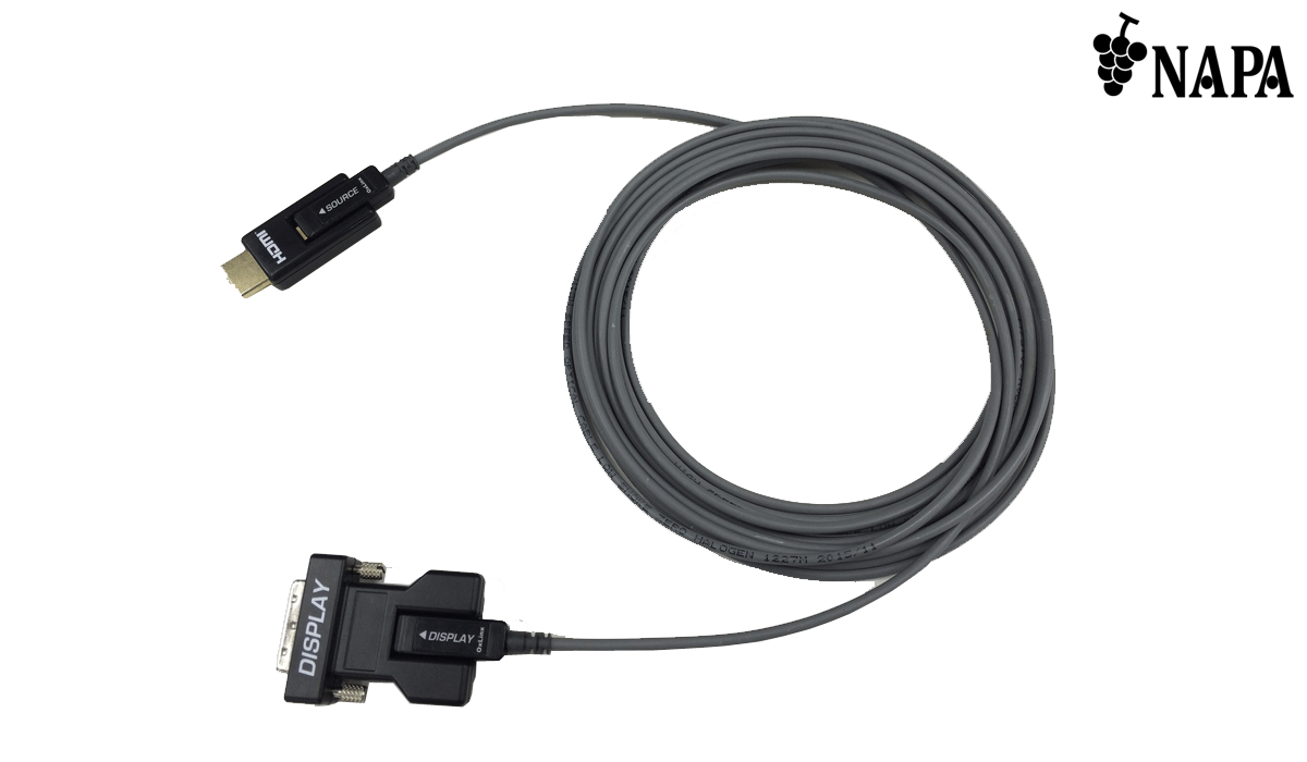 NP-AOC-HDMI/DVI は、コネクター着脱式のHDMI からDVI 変換光延長ケーブルでFull HD またはWUXGA RB を最大100mまで延長が可能です。信号劣化、損失、伝送距離の制限、またケーブルの重さの点から従来の同軸ケーブルや光延長ケーブルより優れており、容易に施工が可能です。また通線がしやすいようにHDMI コネクター部分とDVI コネクター部分は取り外しができるように設計されており、コネクターと光ケーブルの接続部はmicro-HDMI となっています。ソース側のHDMI端子より電源を共有するため外部電源供給が不要です。高い引張強度、圧潰強度を持ち、高品質難燃性の外皮を採用しています。
