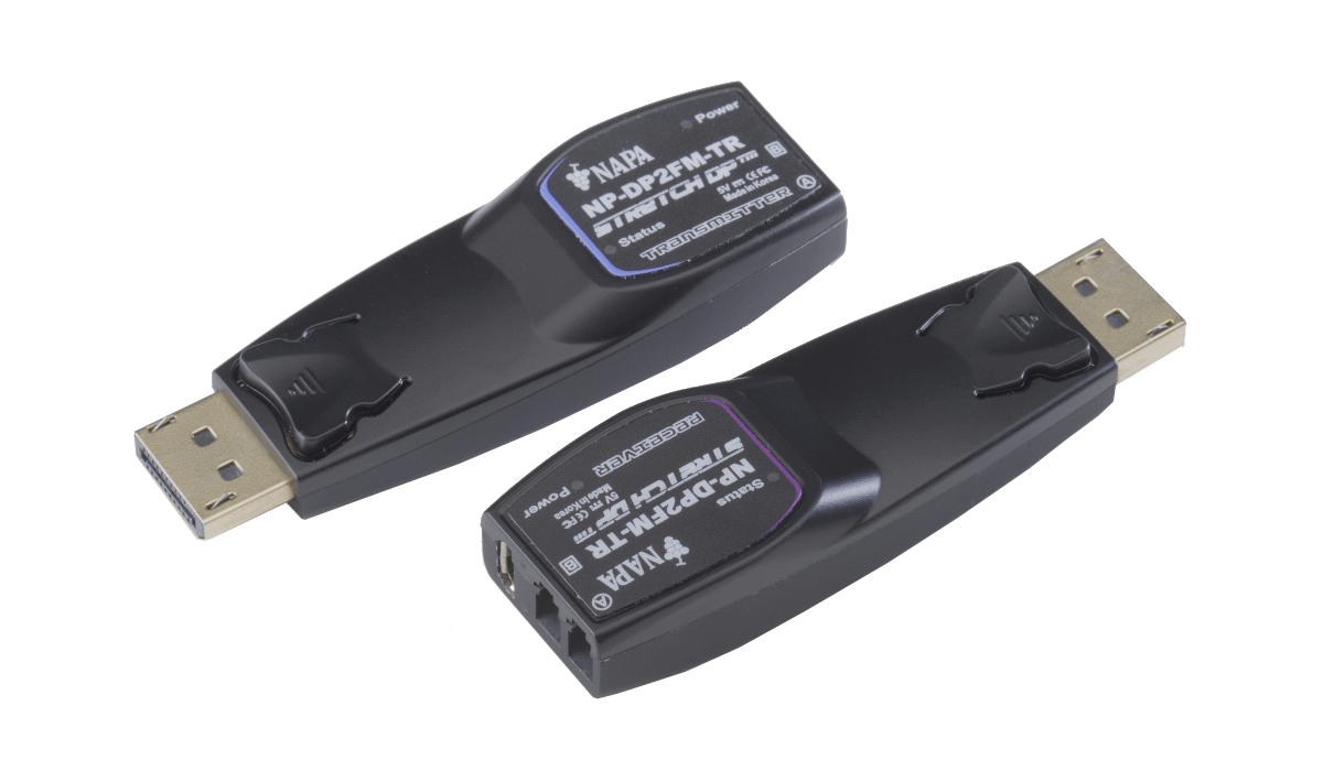 NP-DP2FM-TRは2本のマルチモード光ファイバーケーブルでDisplayPort信号を長距離伝送する着脱式送受信器です。マルチモード光ファイバーケーブルで最大100 mまで伝送可能です。モジュールの光ファイバーケーブル接続はLCコネクターで、DisplayPort1.2対応です。映像信号の最大解像度は4K(UHD,4096x2160) @ 60 Hzで非圧縮、無加工で伝送し品質を劣化しません。