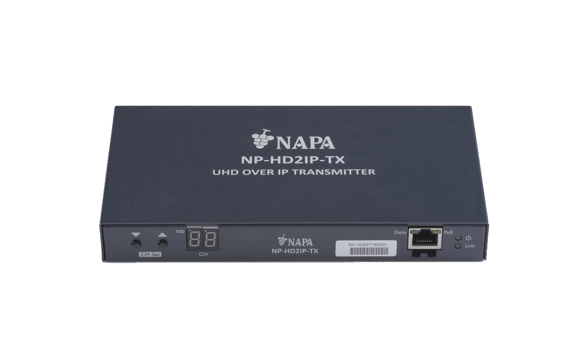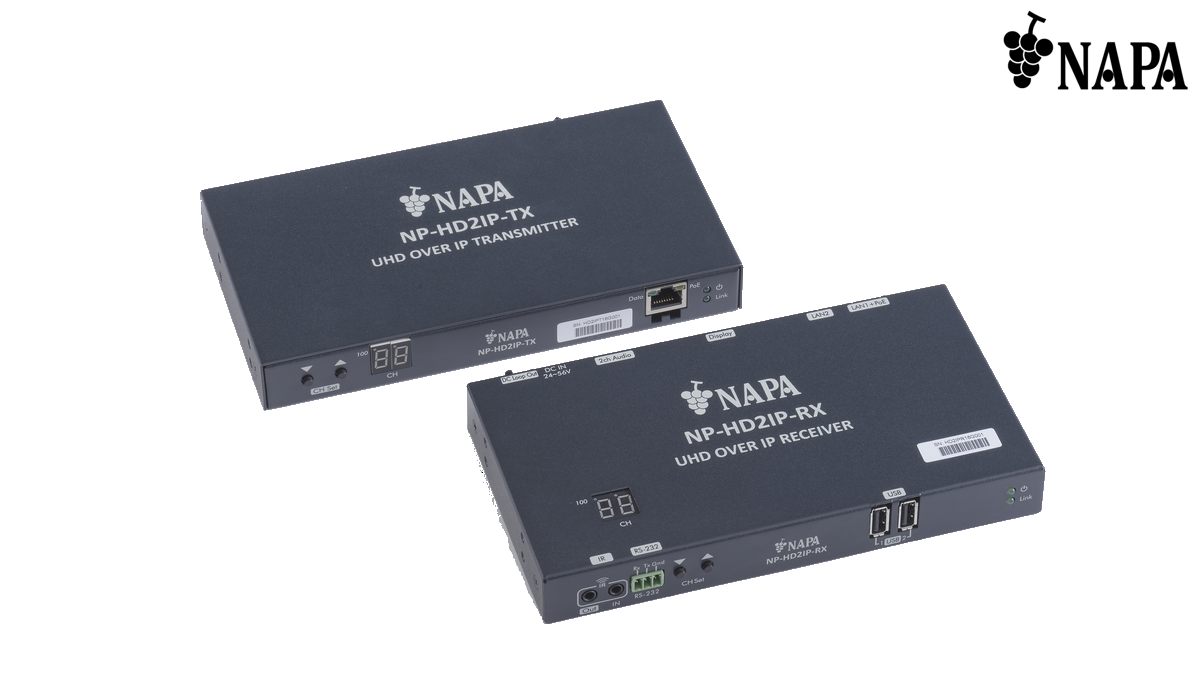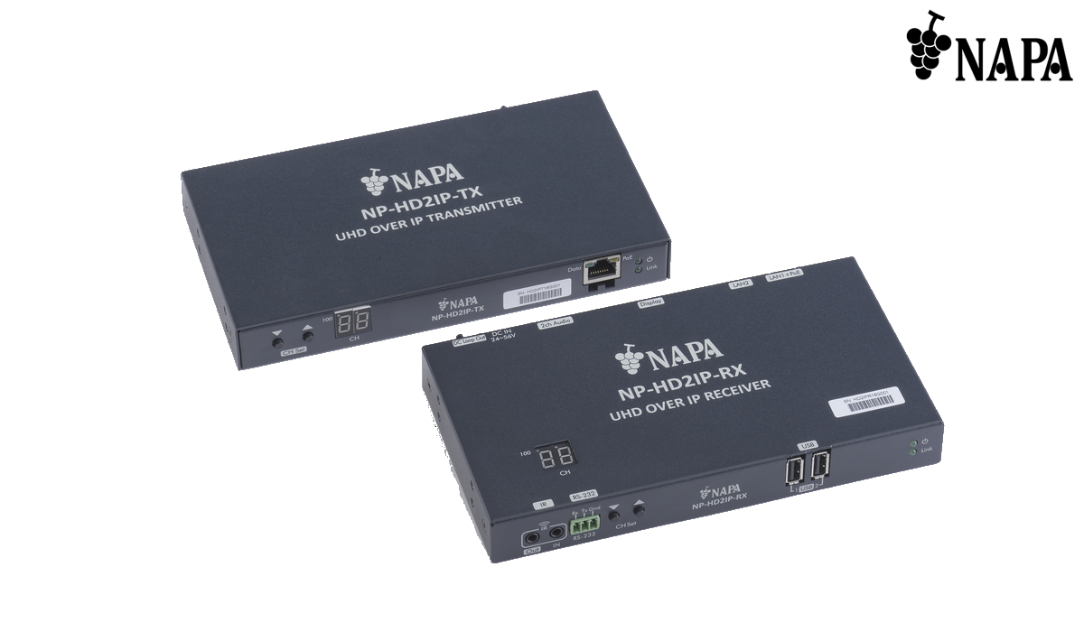 NP-HD2IP-TRは最大4K@30の高解像度映像をCat5e/6ケーブルで送受信器それぞれ最大100 mまで伝送することが出来るIPネットワーク延長器です。