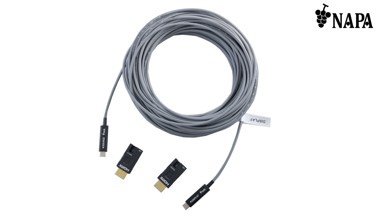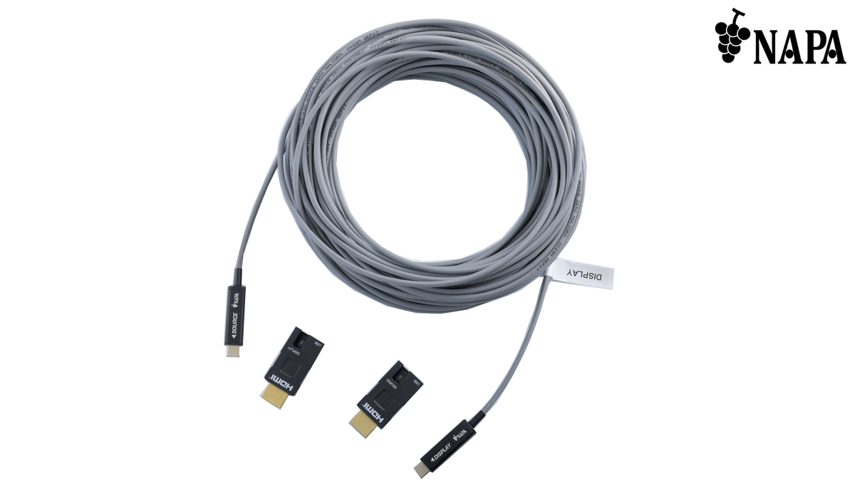 NP-MLTAOC-DVI/HDMIは、コネクター着脱式のDVI→HDMI変換光延長ケーブルで、最大1080Pの解像度をデータ損失なく、最大50mまで伝送することが可能です。さまざまな用途でご使用いただけるようにコンパクトデザインに設計され、AOC (Active Optical Cable) 部分と、DVI・HDMIコネクター部分が着脱可能になっておりますので、現場で施工しやすくなっております。電源はシンク側およびソース側のUSBケーブル・USB電源アダプター経由で供給されます。高い引張強度、圧潰強度を持ち、高品質難燃性の外皮を採用しています。NP-MLTAOCはコネクターをHDMI、DVI、DisplayPortに変更可能なマルチコネクター式の光延長ケーブルです。