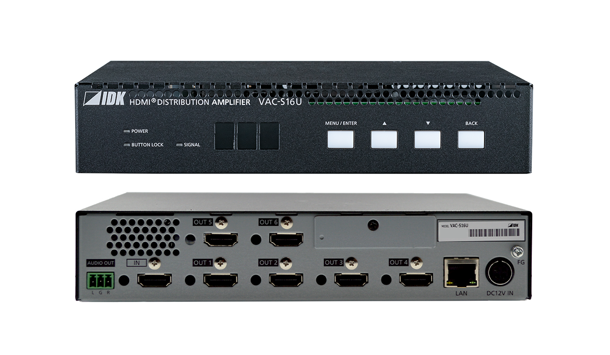 | 機能 | WEBブラウザー制御、アンチストーム、コネクションリセット、ボタンロック、 OUT1のみダウンコンバート対応 (4Kから1080pへの変換)、状態通知、 出力ごとの映像ミュート / オフ、入出力信号ステータス表示、システムチェック |