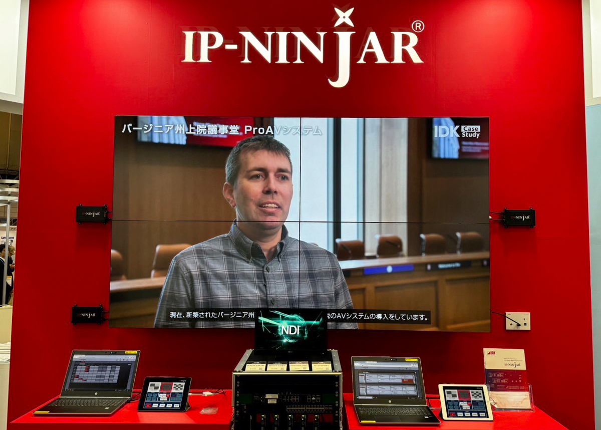 会場では、バージニア州上院議事堂の採用事例をビデオで紹介しながら、IP-NINJAR AV over IP による4面マルチディスプレイを使用したデモンストレーションをおこないました。