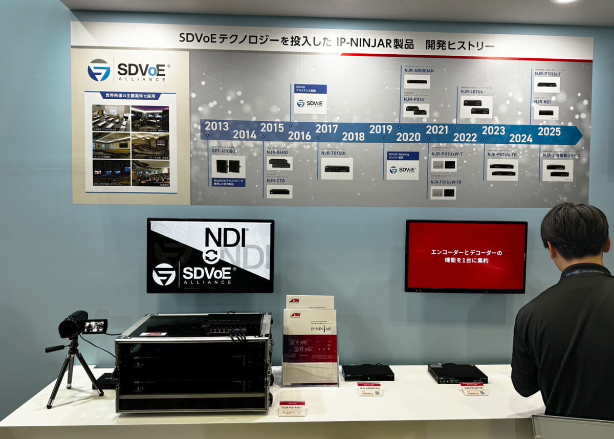 SDVoEを使ったシステムソリューションは、国内外の主要システムでの採用が広がっています。SDVoEテクノロジーを使ったIP-NINJAR製品は、他社にはない豊富なラインアップを特長としており、DanteオーディオやNDIなどの異なるシステムとの親和性を高めるシステムブリッジにも積極的に取り組んでいます。