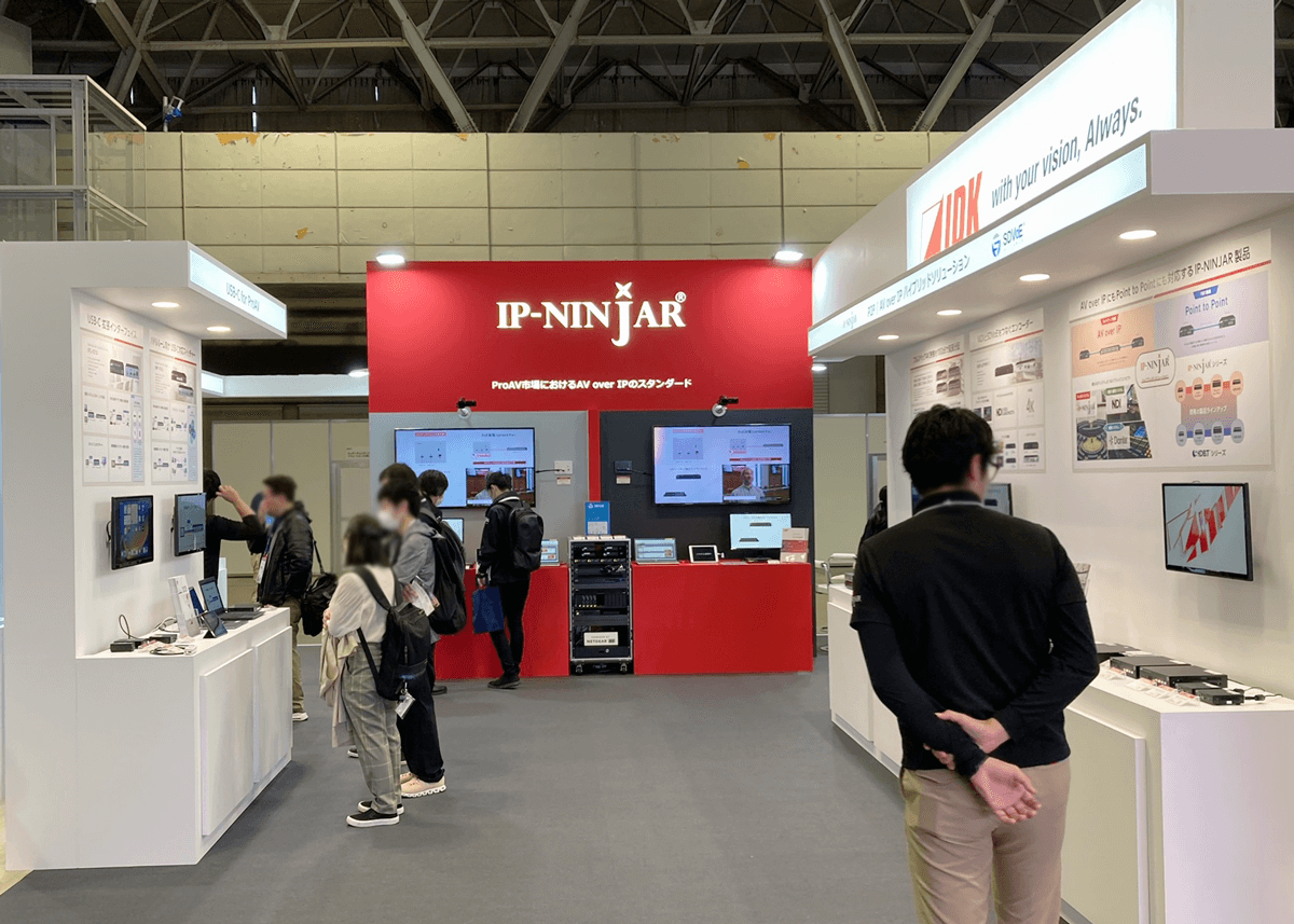 ネットワークスイッチを使用したAV over IPシステムだけでなく、フルスペック4K対応や1対1接続のビデオ延長による従来型AVシステムにも対応できるIP-NINJARシリーズ製品を多数展示。