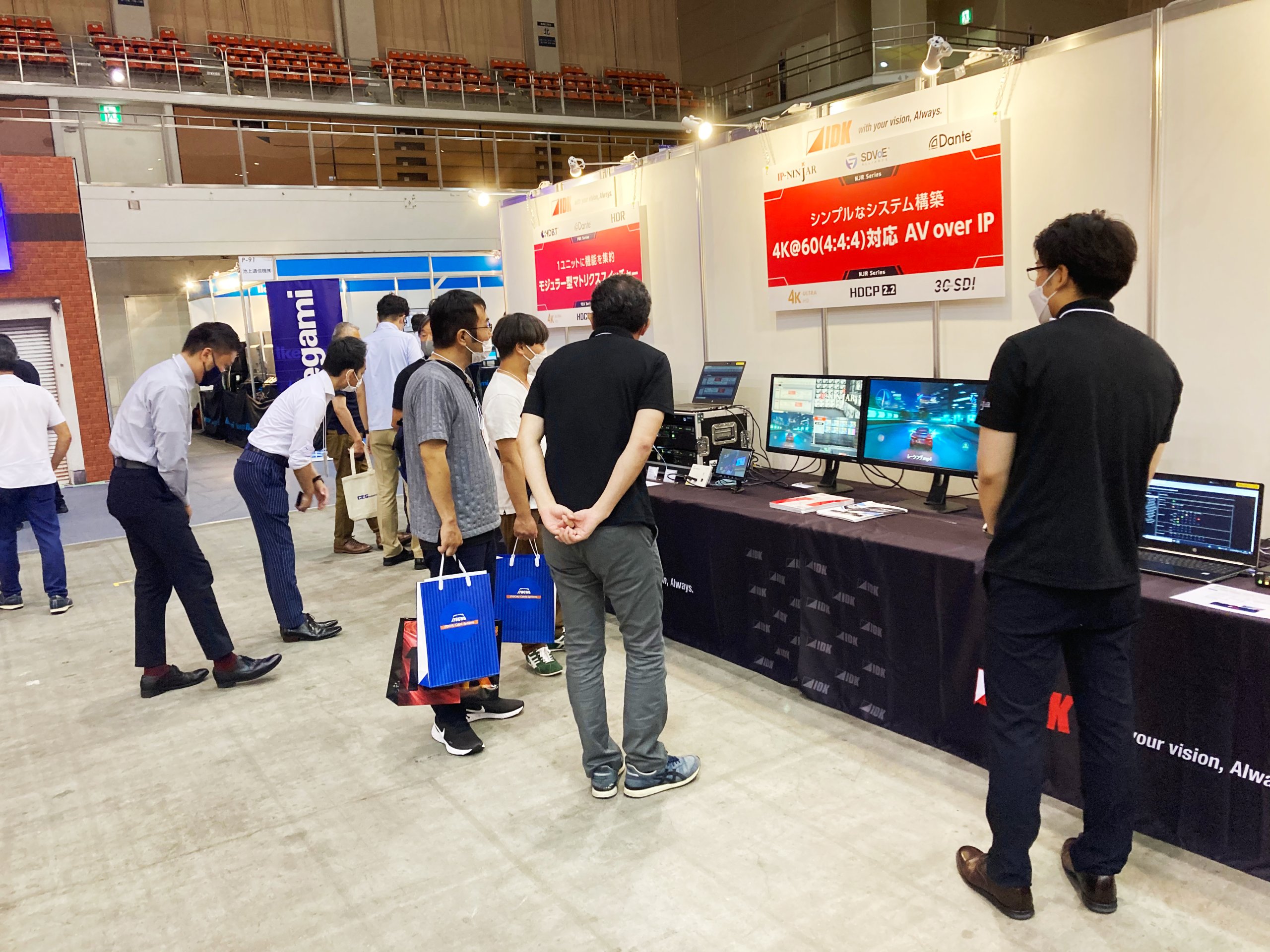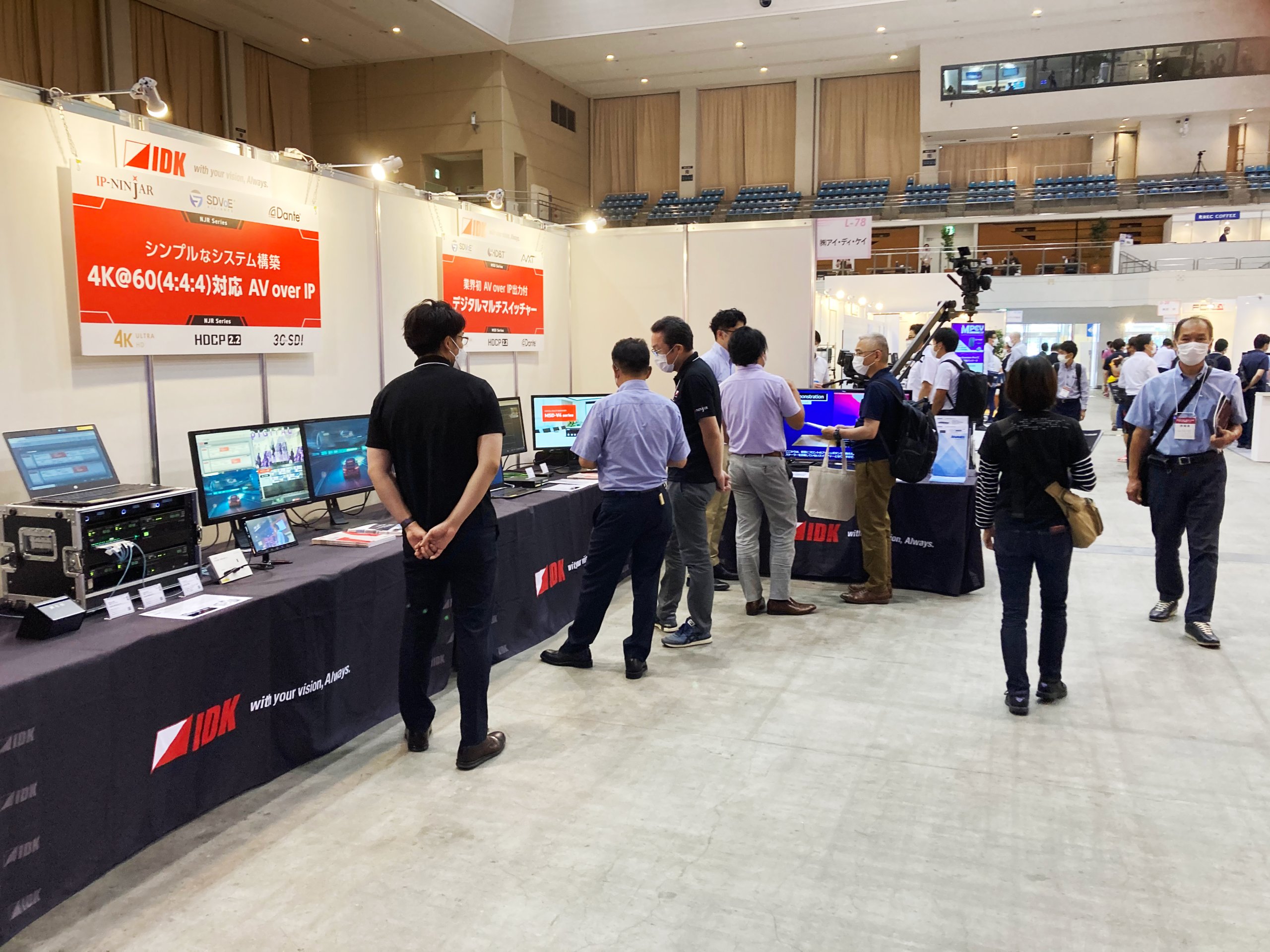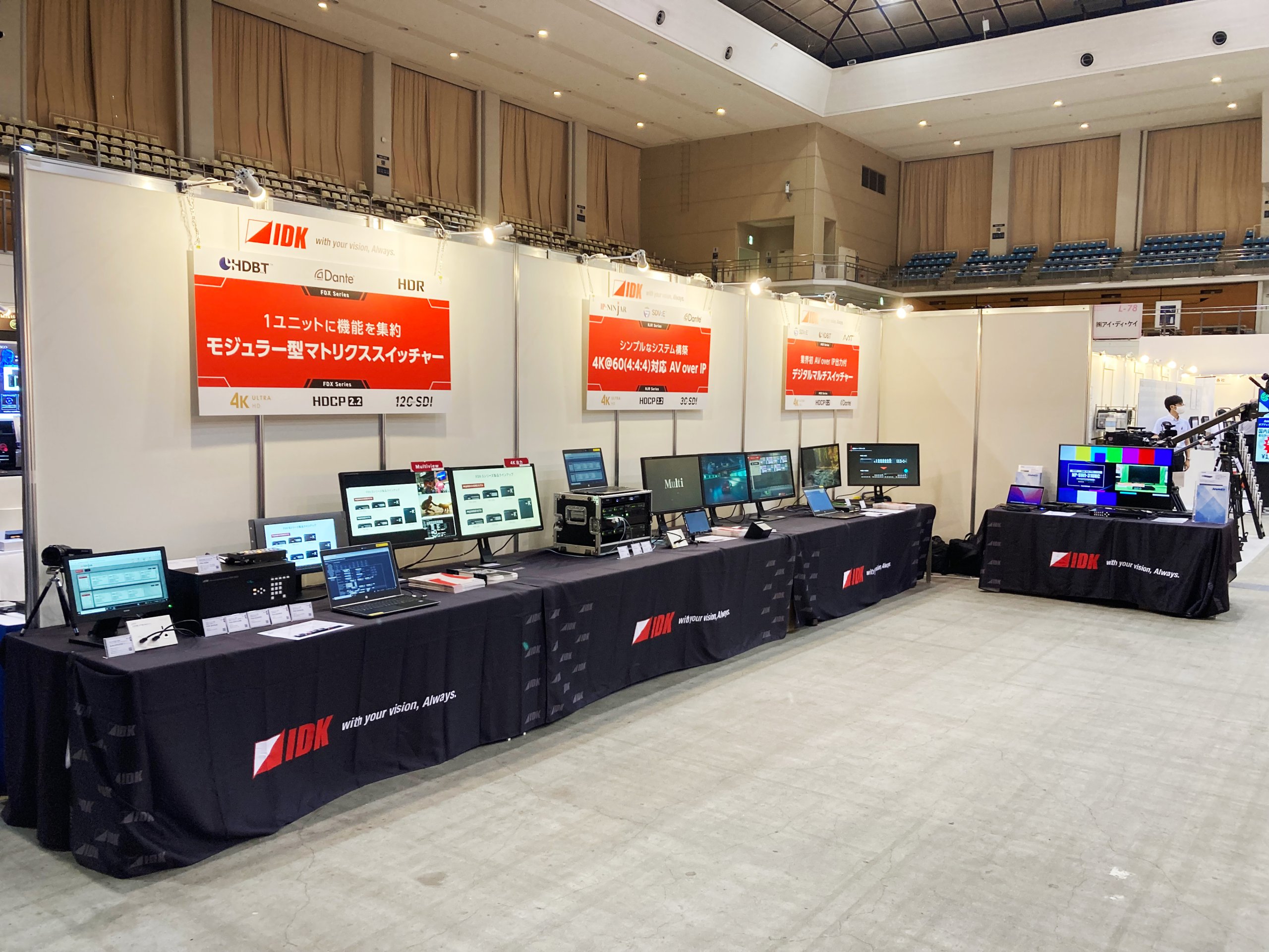 当社ブースでは、AV over IP製品「IP-NINJAR®シリーズ」を始め、モジュラー型マトリクススイッチャー「FDX-S Uシリーズ」の各ボードの出力映像切換速度比較、SDVoE分配出力付きデジタルマルチスイッチャー「MSD-V42UC」と次世代延長器「AVE-S01UC-R」などの 4K対応製品のデモ展示を行いました。