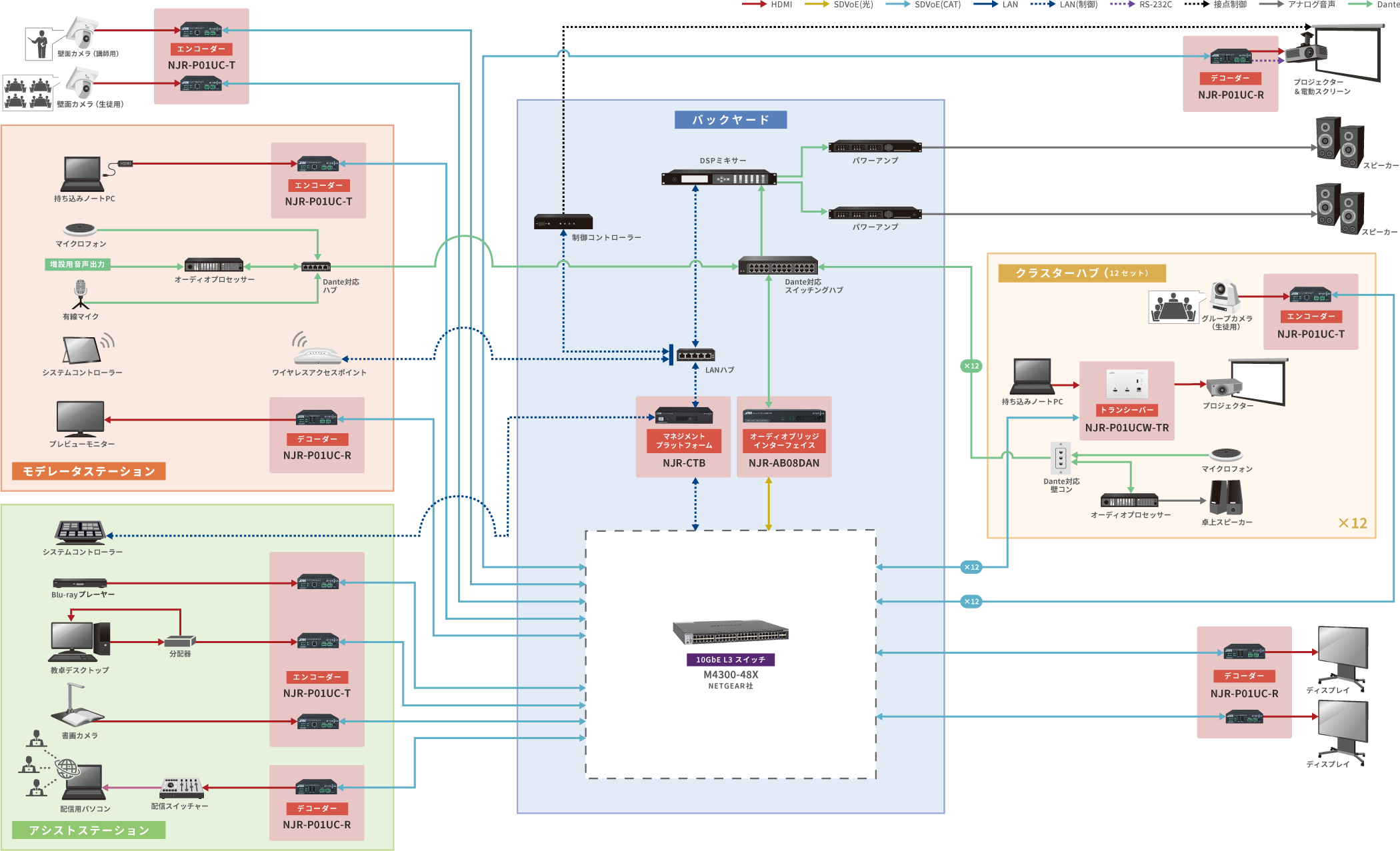 - 映像と音響のノイズや遅延がなく、複雑なルーティングをコントロールできるAVCシステムを実現したい