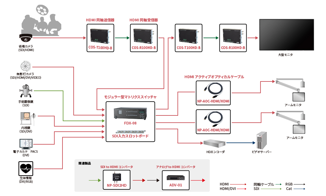 医療現場においては超高解像度映像による画像診断や映像共有が進んでいます。IDKでは4Kに対応した画像合成器や映像伝送器をはじめとした各種映像機器をラインアップ。