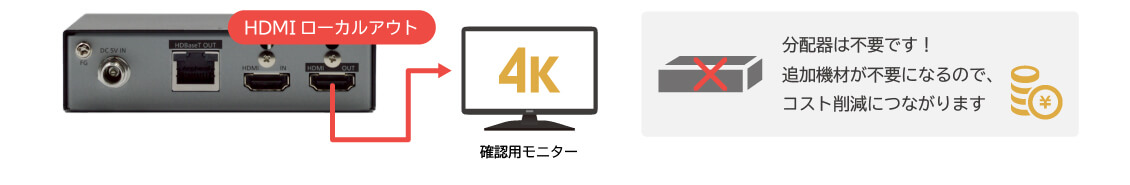 送信器 HDC-S01U-TにはHDMIローカルアウトを装備。