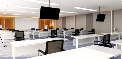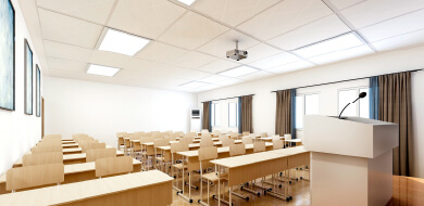 ヤマハ社のProVisionaireコントロールパネルより、集会室や講堂で映像と音声を集中管理できる中規模AV 視聴覚システム