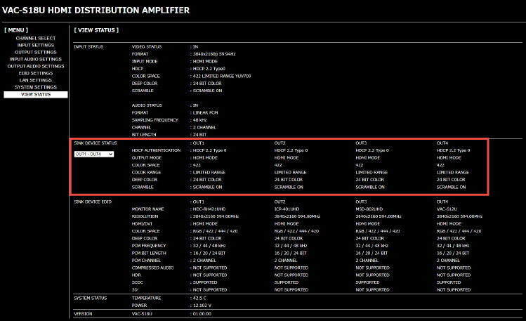 機器本体のフロントディスプレー・WEBブラウザーから、機器本体や接続されている表⽰機器の状態を確認することができます。