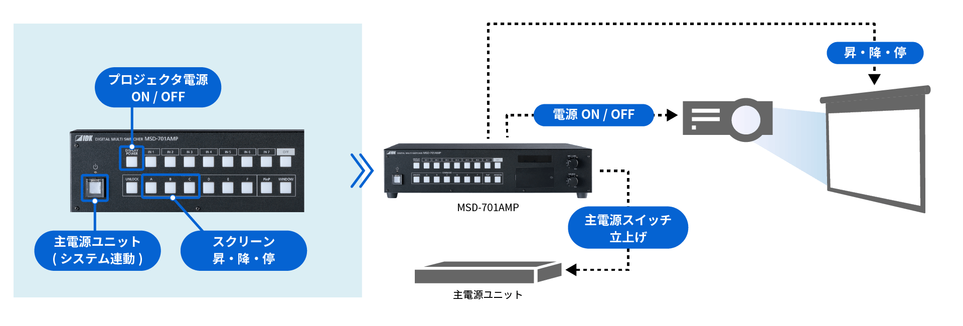 弊社製品からプロジェクターや主電源ユニットなどの他の機器への制御コマンドの登録作業を承ります。